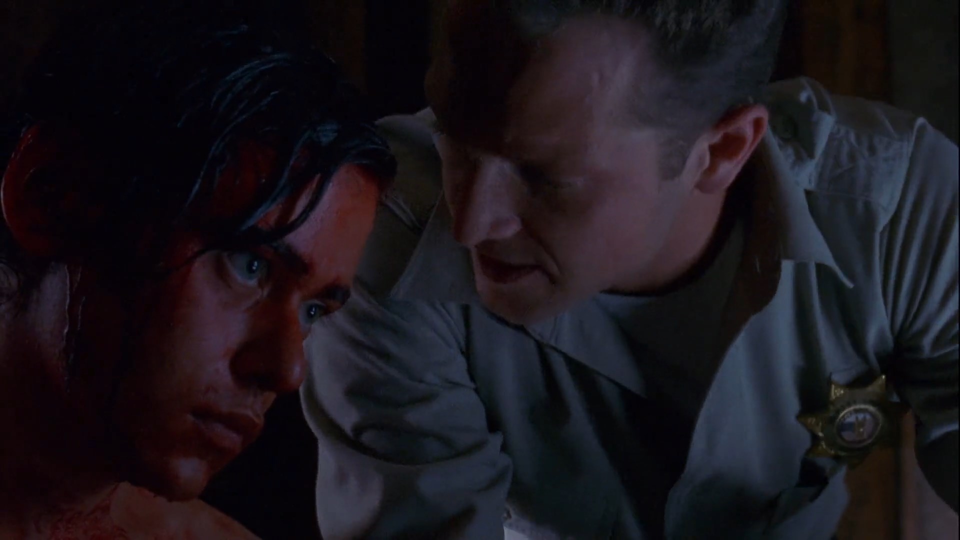 Anyway, Kid Bloody mildly freaks everyone out. He keeps bleeding other people’s blood and whenever that blood touches someone, they get a flash of something horrible that has happened. At least one character gets the pretty sensible idea of getting out of town while someone more qualified to deal with the problem comes in. But he’s told that “you’re-a-cop-sacred-duty-blah-blah” and everyone pretty much just runs around acting as confused as the viewer. It doesn’t look like this supernatural force intends for anyone to leave anyway, but the reactions from some of the characters strain credibility.