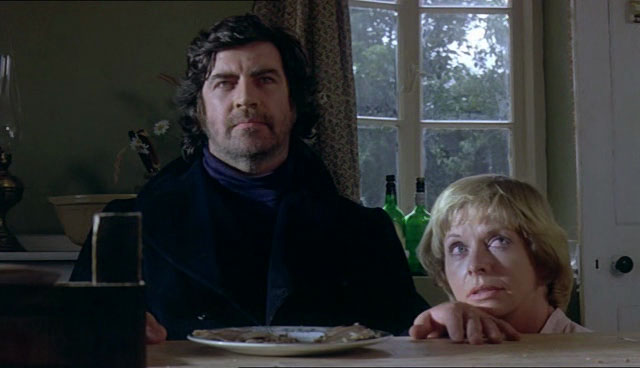 Sometime before, Crossley encounters Anthony and Rachel Fielding (John Hurt and Susanna York). The two live in a small, isolated, English town. Anthony is an experimental composer while Rachel finds ways to pass the time as Anthony tinkers with his instruments. Crossley infiltrates their lives, staying with the couple and disrupting the dynamic between the two. He claims to possess special powers that he learned in his years spent amongst an Aboriginal tribe. He speaks of a way to make any woman his own and Anthony fears Crossley may be using this practice to seduce his wife. But Crossley is not one to be trifled with, as he also claims to have the power of a shout that can kill all who hear it.
