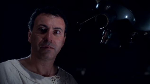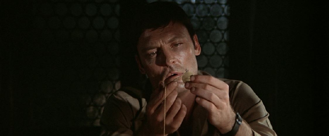 For much of the film, the prisoners run riot throughout the castle, never hurting one another, but indulging in their own delusions. There seems to be no sense of order. They are able to indulge their fantasies and interrupt Kane whenever they see fit. A lieutenant (Jason Miller) takes on the persona of a theatre director trying to translate the complete works of Shakespeare for dogs. An African-American major (Moses Gunn) walks around in a Superman outfit, sometimes substituting the “S” for an “N.” A captain (George DiCenzo) claims to possess multiple personalities, one of whom angrily tries to “punish the atoms” when they will not allow him to pass through walls.