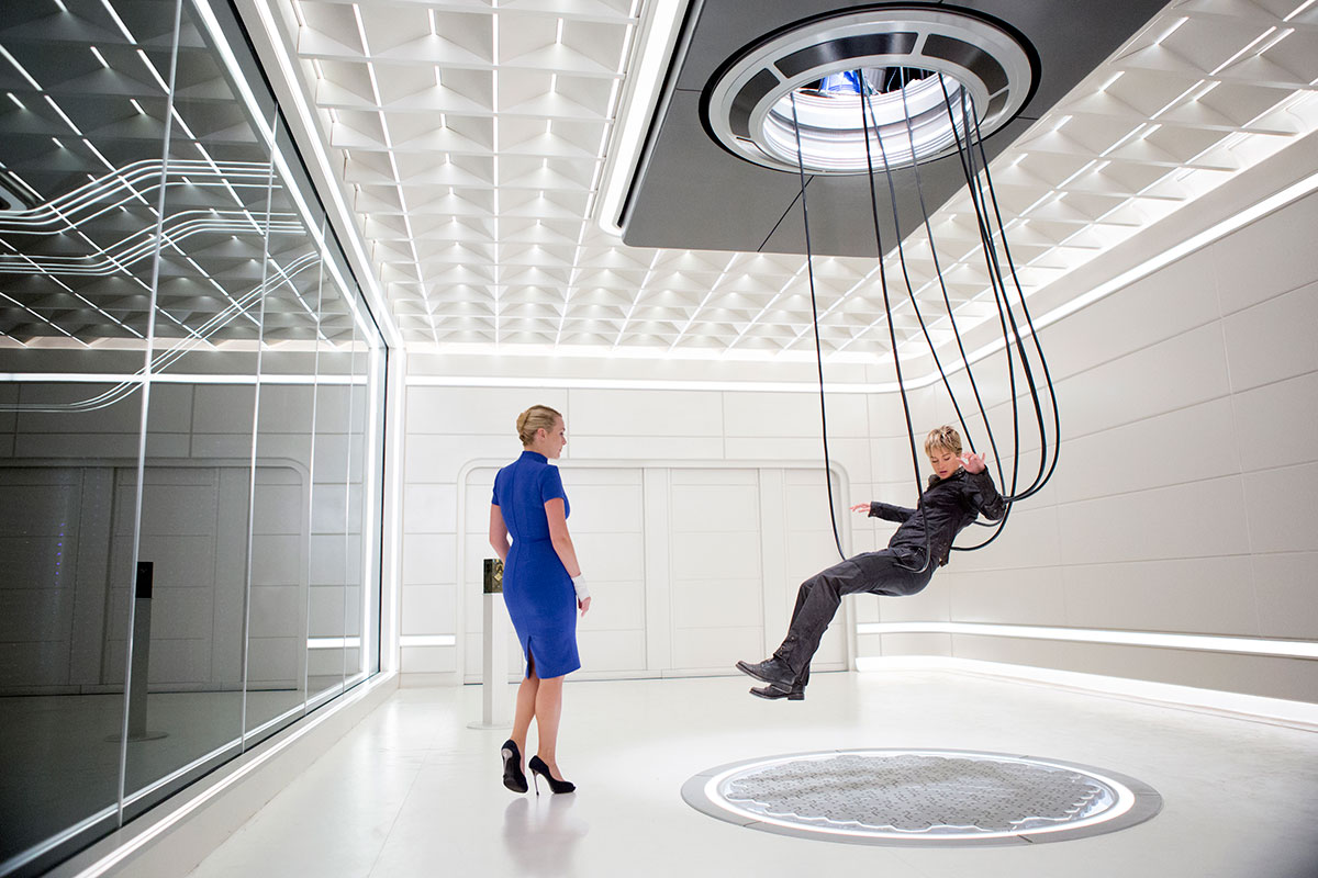 The film looks rushed, which of course it was. But a film with a budget over $100 million should not look as shoddy as INSURGENT so often does. Take for instance a scene in which both Tris and Four (Theo James, who is left with nothing to do in this installment) have to undergo an interrogation at Candor. This is a scene in which even the script clearly calls for a great hall, courtroom or something similar. And yet the sequence looks as though it was filmed in a hastily-dressed corner of a warehouse with only a few people thrown in as witnesses, literally hugging the walls because the set can’t hold more than a handful.