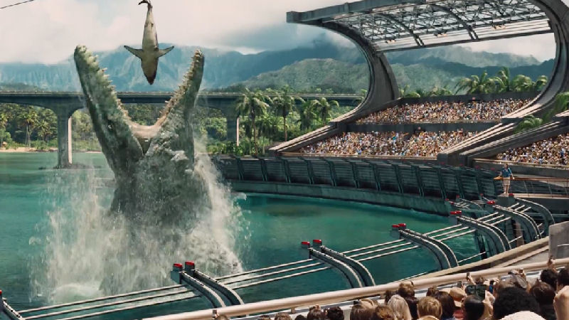 The biggest sin committed by John Hammond when he built Jurassic Park was believing he could create and then control an entire ecosystem. It is a lesson that was not learned by the people involved in the Jurassic World park. Jake Johnson (who also showed up in Trevorrow’s previous film, SAFETY NOT GUARANTEED) serves as a sort of conscience for the film by noting that these are animals and eventually they will eat those lower on the food chain. He bemoans the fact that a park that was set up with the best of intentions has become just another tourist trap, joking about all the corporate sponsors. It should also be noted that we do actually see these company logos emblazoned across the midway, suggesting that either the companies who paid for product placement in JURASSIC WORLD don’t get the joke or more likely they just don’t care.